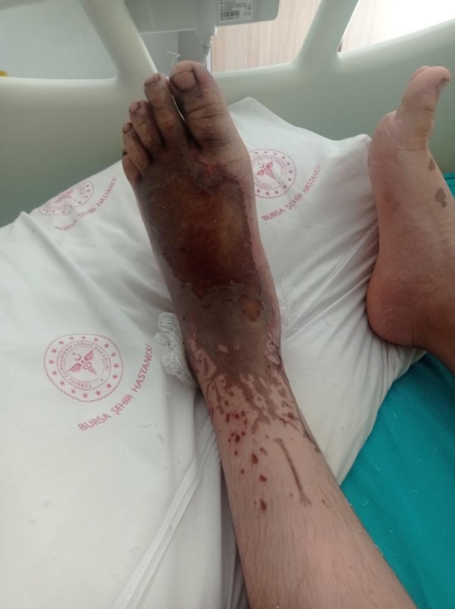Yanında bulunan arkadaşlarından yardım isteyen Turan, arsa içinde açıkta duran bidonlardan su olduğunu düşündükleri bir sıvıyla yanmayı dindirmeye çalıştı. Ancak gençler, Turan'ın ayağındaki yanıkların daha ciddi olduğunu fark etti. Kestel Devlet Hastanesi'ne götürülen Turan Çiftçi, ilk müdahalenin ardından Bursa Şehir Hastanesi'ne sevk edilerek ameliyata alındı. Doktorlar, gencin ayağına sağlıklı bir deri nakli gerçekleştirdi. Ailenin avukatı Turhan Turgut olayla ilgili hukuki süreci başlatacaklarını belirtti.