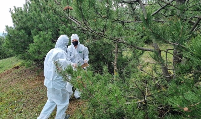 Bölge Müdürlüğü bünyesindeki Biyolojik Mücadele Laboratuvarı’nda titizlikle üretilen terminatör böcekler, Bursa ve Bilecik illerinde zararlının yoğun olarak görüldüğü çam ormanlarına bırakılıyor.