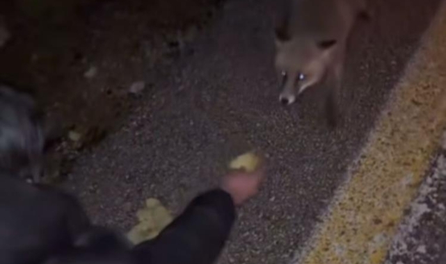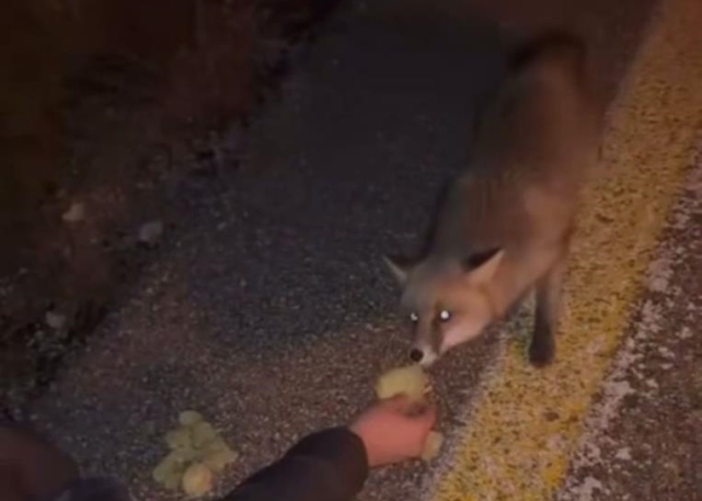 Tilkinin aç olduğunu fark eden gençler, yedikleri cipsi tilkiye verdi. Tilkiye eliyle besleyen kişiyi ise arkadaşı kayda aldı. O anları sosyal medyada paylaşan gençler, bazı vatandaşların tepsini çekti.
