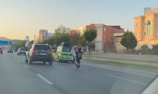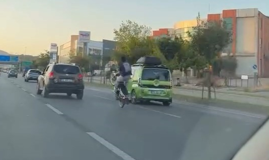 Araçların arasından o şekilde geçen sürücünün, kask ve benzeri olması gereken ekipmanlarının da olmadığı gözlendi.