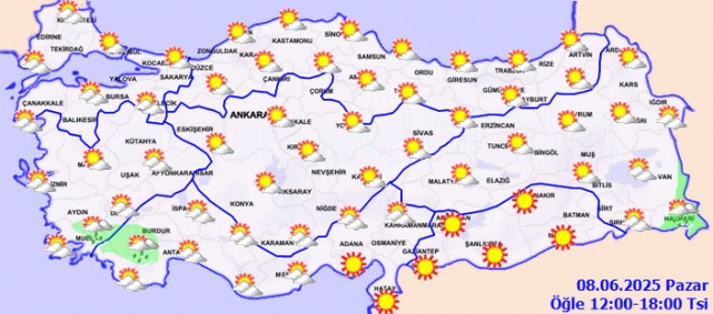 Muğla'nın iç, Denizli'nin güney ve Burdur'un batı kesimleri ile Hakkâri çevrelerinin yerel sağanak ve gök gürültülü sağanak yağışlı, diğer yerlerin de az bulutlu ve açık geçeceği tahmin ediliyor.Hava sıcaklığının da yurt genelinde mevsim normallerinin üzerinde seyretmeye devam edeceği öngörülüyor.