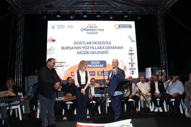 Gezek kültürü yaşatıldıBursa’nın yaşam kültürünü yansıtan Gezek Programı da alanı dolduranlar tarafından büyük ilgiyle takip edildi. Başkan Mustafa Bozbey de eşi Seden Bozbey ile birlikte programa katılarak Bursa’nın yüzyıllara dayanan zengin müzik geleneğini doyasıya yaşadı. Davet üzerine sahneye çıkan Başkan Bozbey, ‘Yeşil Ördek Gibi Daldım Göllere’ türküsünü seslendirdi. Daha sonra Şef Dr. Aysel Gürel önderliğinde sahne alan ‘Gastro Müzik Korosu’ da performanslarıyla Bursalılara keyifli anlar yaşattı.Gastro Söyleşi Alanı