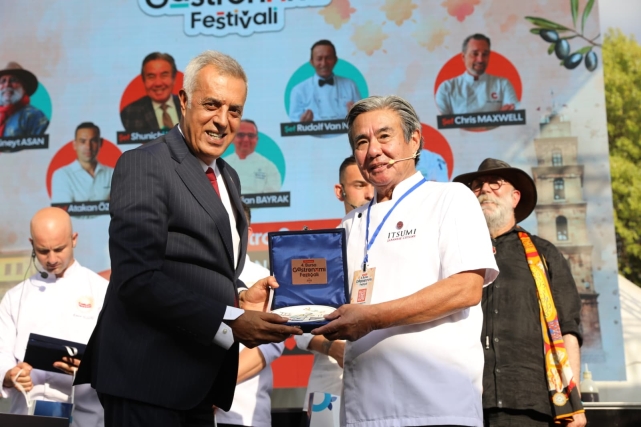Usta şefler Bursa ürünlerini yorumlarıAna Sahne’de yapılan ‘Açılış Gastro Sahnesi’ katılımcılar tarafından büyük ilgiyle takip edildi. ‘Bursa’dan Dünyaya Lezzet Sunumu’ konulu programda, Şefler Cüneyt Asan, Shunichi Horikoshi, Rudolf Van Nunen, Chris Maxwell, Atakan Özen, Alparslan Bayrak ve Emre Uslu tarafından Keles kuzu etiyle birlikte Bursa’nın yöresel lezzetleri kullanılarak birbirinden güzel tabaklar hazırlandı. Lezzet tutkunlarına ürünleri nasıl doğru kullanacaklarını da anlatan şefler, yemek hazırlarken dikkat edilmesi gereken püf noktaları da aktardı. Bursa’nın zengin bir mutfak kültürüne sahip olduğunu vurgulayan şefler, ürün çeşitliliğinin de Bursa’yı ön plana çıkardığını dile getirdi.