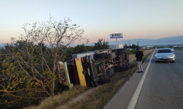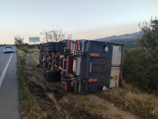 Kaza, akşam saatlerinde Orhangazi-Yalova karayolu Süpürgelik mevkiinde meydana geldi. Alınan bilgilere göre, Cengiz A. (43) idaresindeki 16 AYH 161 plakalı bir zincir markete ait nakliye kamyonu, Orhangazi’den Yalova istikametine halindeyken kontrolden çıkarak dere yatağı sınırında devrildi.