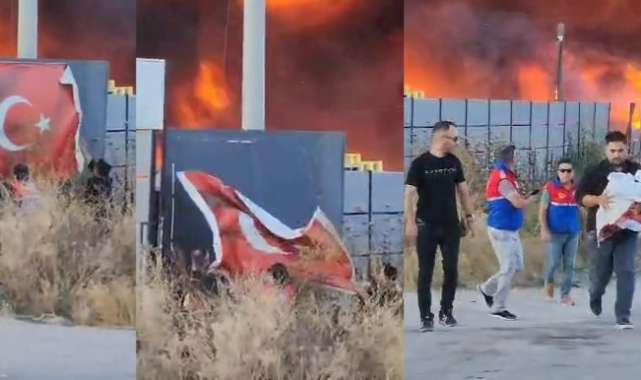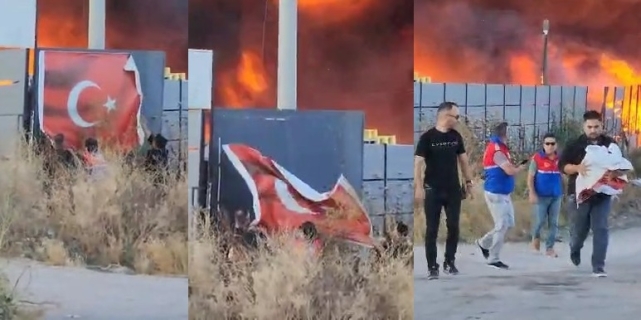Yangının çıkış nedeni henüz bilinmezken, ekiplerin yangını kontrol altına alma çalışmaları yoğun şekilde devam ediyor.Alevler içerisinden Türk bayrağını kurtardılar