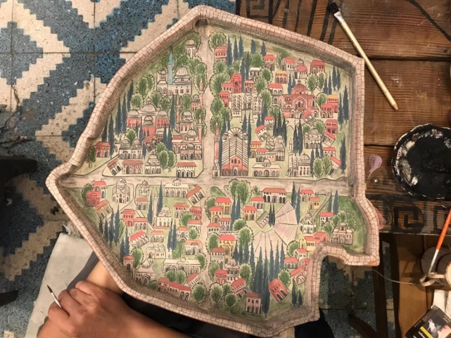Kültür ve Turizm Bakanlığı'nın ‘Somut Olmayan Kültürel Miras Taşıyıcısı' unvanına sahip Künen'in hazırladığı minyatür çalışmada, kentin simgesi hâline gelmiş tarihi yapılar, İznik surları, anıtsal kapılar ve kentin kültürel dokusunu temsil eden önemli noktalar yer alıyor. El emeği göz nuru bu özel eser, geleneksel İznik çini sanatının modern bir yorumla aktarıldığı nadide bir örnek.