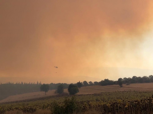 Havadan da helikopterin müdahale ettiği yangın, kısmen kontrol altına alındı.