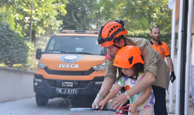 Uygulamalı olarak düzenlenen eğitimleri dikkatli bir şekilde takip eden minikler, tatbikatlar esnasında ise itfaiyecilere adeta taş çıkarttı.