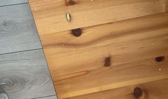 Hakan Kılıç’a ait Karacaahmet Mahallesi’nde bulunan eve yorgun mermi isabet etti. Sabah uyandıklarında evin oturma odasının tavanının delik olduğunu fark eden ev sahibi yerdeki mermi çekirdeğini görünce şaşkına uğradı.
