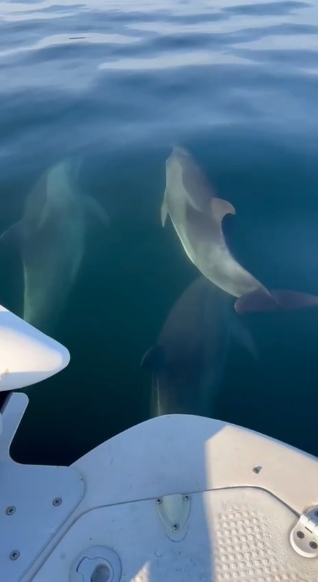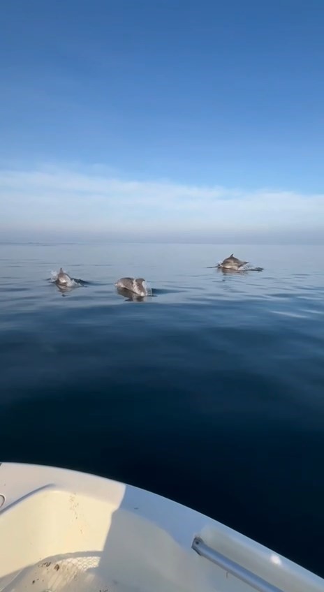 Ara ara tekneden uzaklaşan yunusların, bir süre sonra yeniden teknenin yanına gelerek balıkçıya eşlik etmesi dikkat çekti. Kendisiyle yüzen yunusların verdiği tebessümle birlikte balık tutmayı unutan balıkçının kayda aldığı görüntüler ise kısa sürede binlerce izleme aldı.